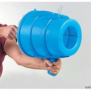 The AIRZOOKA is a huge, over-sized, bazooka like toy that shoot a big ball of air! Large blast of air travels up to 20 feet. The AIRZOOKA is made of plastic, comes in assorted colors and requires easy assembly.